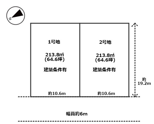| 接道状況 | 一方 (北西側 公道6.0m 間口10.6m) | ||